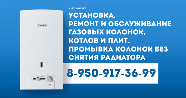 Установка, ремонт и обслуживание газовых колонок, котлов и плит. Промывка колонок без снятия радиатора. Тел.: 8-950-917-36-99 |